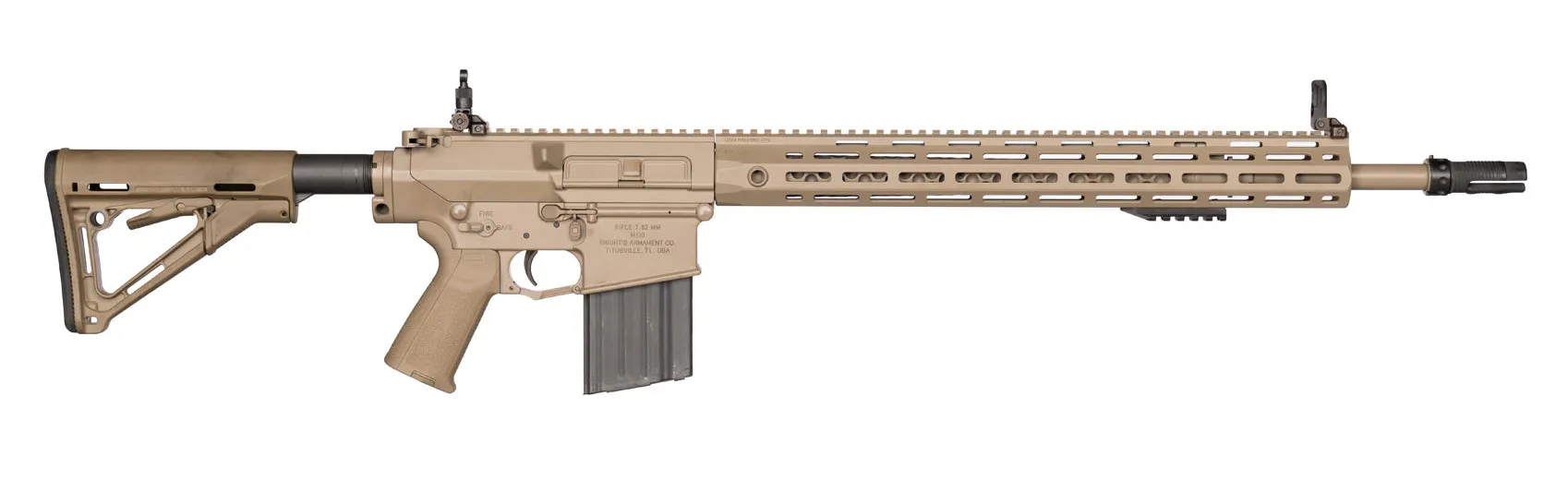 Η δωρεά αφορά έναν μικρό αριθμό, συγκεκριμένα 7, τυφεκίων ελευθέρου σκοπευτού τύπου M110A2 της γνωστής αμερικανικής εταιρείας Knight’s Armament Company. Στην πραγματικότητα πρόκειται για πλήρεις συλλογές τυφεκίων ελευθέρου σκοπευτού με διόπτρα σκοπεύσεως ρυθμιζόμενης μεγεθύνσεως Schmidt & Bender 5-20×50 PMII, διόπτρα ταχείας σκοπεύσεως Micro T2 της Aimpoint, σιγαστήρα τύπου KAC CRS-1, συλλογή καθαρισμού και θήκη μεταφοράς.