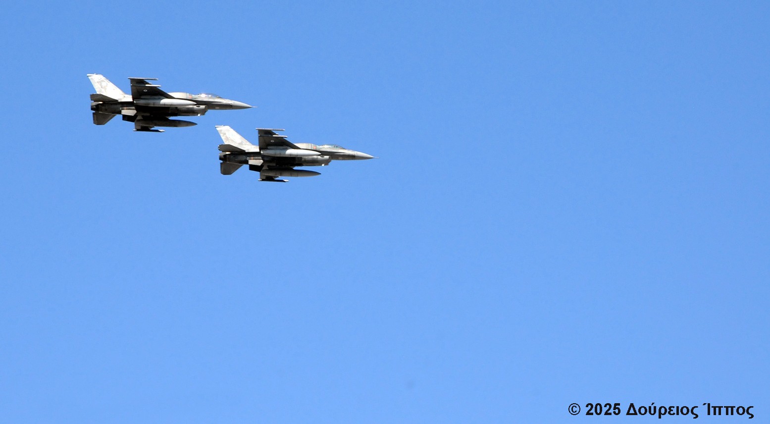 Ευχάριστη έκπληξη απετέλεσε και η εμφάνιση ζεύγους μαχητικών F-16C Block 72 της Ελληνικής Πολεμικής Αεροπορίας στον ουρανό της Λευκωσίας το οποίο πραγματοποίησε δυο διελεύσεις προκαλώντας, όπως πάντα, ρίγη συγκίνησης στους παρευρισκόμενους. Να σημειωθεί ότι η κάθοδος ελληνικών μαχητικών στην Κύπρο είναι μια απαιτητική αποστολή, όχι μόνο λόγω της αποστάσεως από την 115 ΠΜ στη Σούδα της Κρήτης, αλλά εξαιτίας της επιθετικότητας της Τουρκίας, η οποία επιδιώκει, με κάθε τρόπο, να παρενοχλήσει την παρουσία της ΠΑ στην Κύπρο. Για το σκοπό αυτό, απαιτείται προσεκτικός σχεδιασμός της πτήσης και συντονισμός με τα κλιμάκια της Διοίκησης Αεροπορίας του ΓΕΕΦ στην Κύπρο, ενώ απαραίτητη είναι και η συνοδεία τους από άλλα μαχητικά της ΠΑ, τα οποία πετούν μεταξύ Κρήτης και Κύπρου και είναι σε ετοιμότητα για εμπλοκή με τουρκικά μαχητικά που τυχόν θα επιχειρήσουν να παρενοχλήσουν τα ελληνικά μαχητικά που προορίζονται για την Κύπρο.